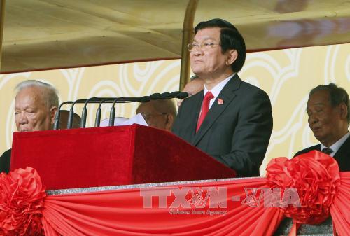 ![]() Chủ tịch nước Trương Tấn Sang đọc Diễn văn tại Lễ kỷ niệm. Ảnh: TTXVN |