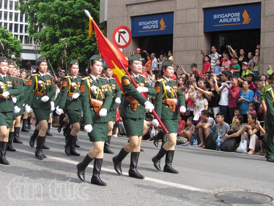 ![]() Khối nữ dân quân các dân tộc đi qua phố Kim Mã. Ảnh: Xuân Cường. |