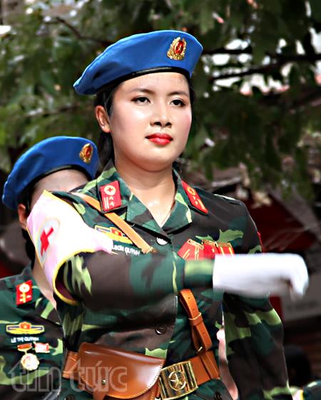 ![]() Một nữ chiến sĩ quân y trong đoàn diễu binh. Ảnh: Việt Hoàng. |