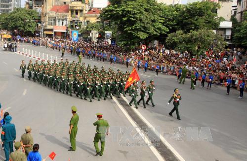 ![]() Khối lực lượng vũ trang diễu binh qua Quảng trường Cách mạng Tháng Tám. Ảnh: TTXVN |